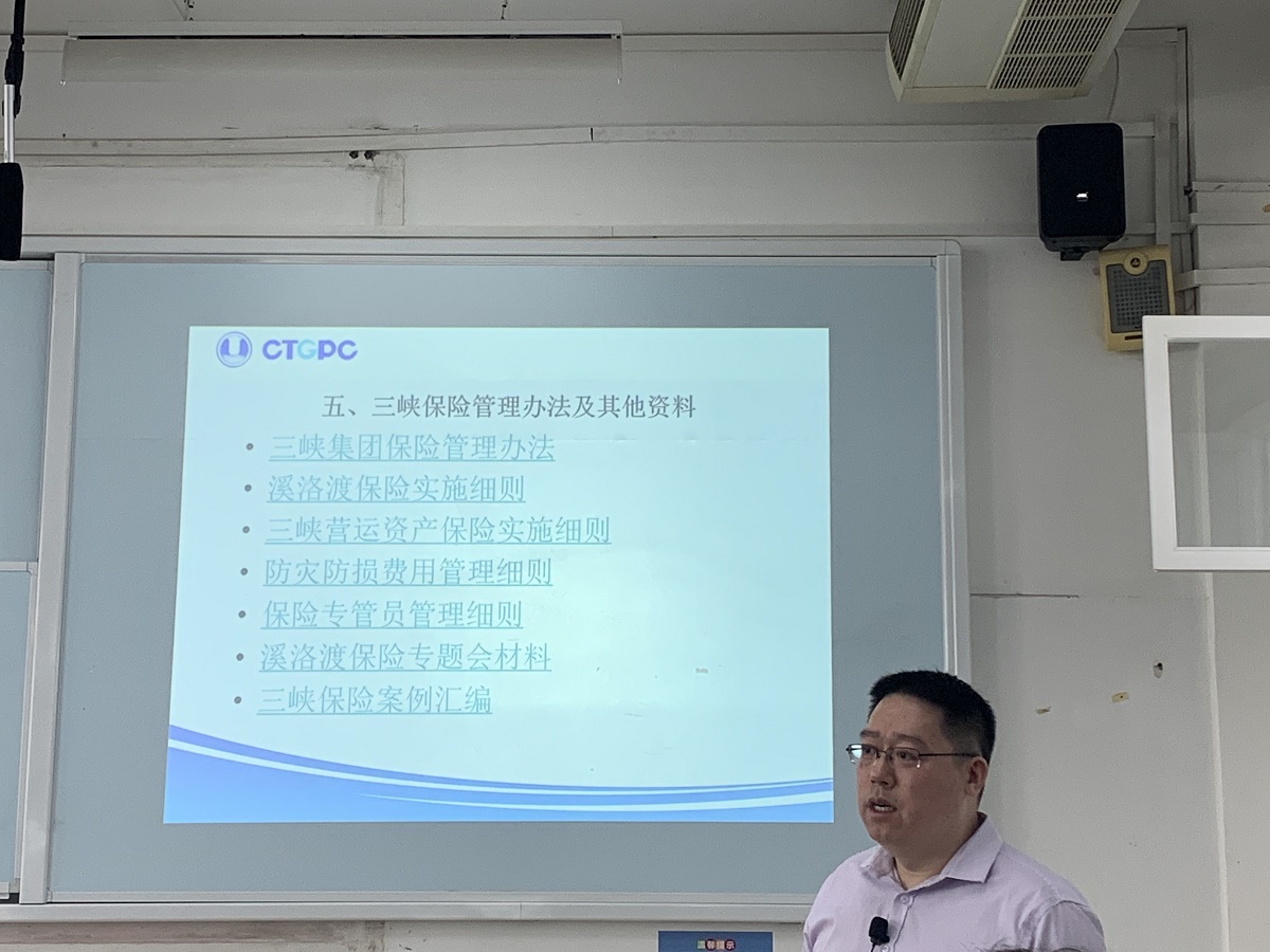 课程围绕三峡工程及三峡工程建设风险管理、三峡工程保险管理体系、部分案例详解和三峡集团保险管理方法及其他资料等五个部分展开。李总重点为同学们讲授了三峡工程的风险管理模式,分点分步骤地介绍了风险的识别与风险评估、风险转移、风险化解和风险防范。随后总结了三峡工程保险的成功之处,即“量体裁衣”的水电工程保险条款,如水下隐蔽物损失条款和混凝土裂痕条款。最后以三峡工程建设过程中有代表性的赔保案例为索引,绘出三峡工程建设风险因素的统计坐标图,形象、科学地让同学们理解保险索赔实务操作。