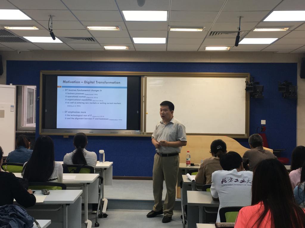 太阳集团tyc151cc工商管理学科在励学楼135室举办了数字化时代的企业管理系列讲座。讲座分为三场,分别在9月13日、14日和18日举行。企业管理硕士点的老师和学生参加了讲座。