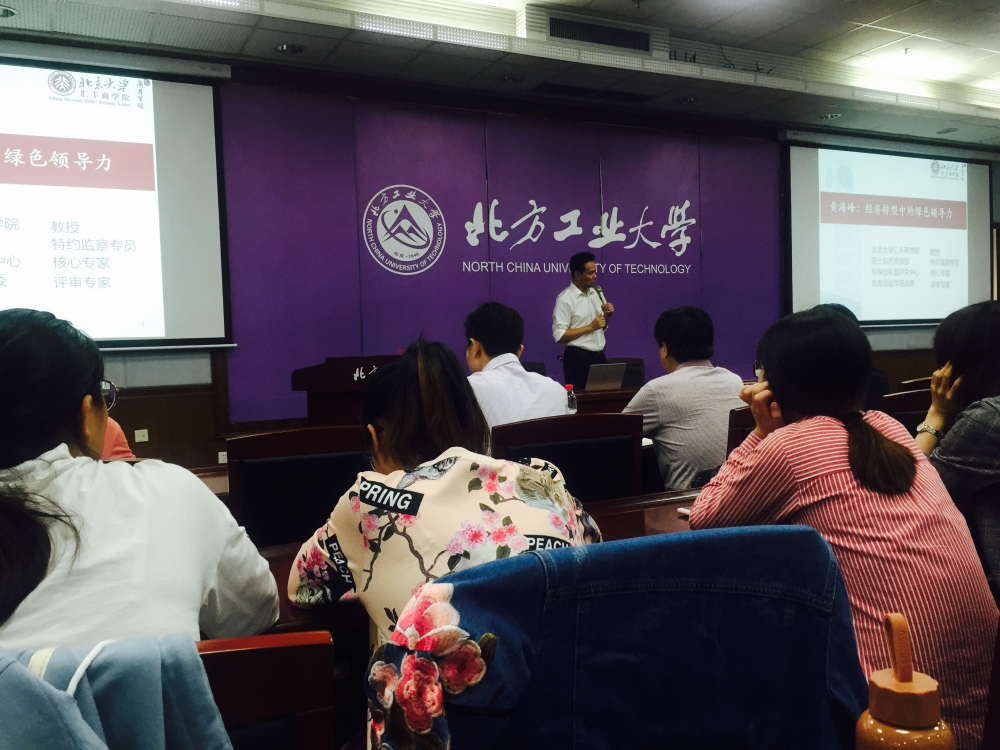 2018年9月12日18时,北京大学汇丰商学院黄海峰教授应邀在太阳成集团tyc151cc浩学楼15楼报告厅做题为“经济转型与绿色领导力”的报告,报告会由太阳集团tyc151cc谢朝阳书记主持。