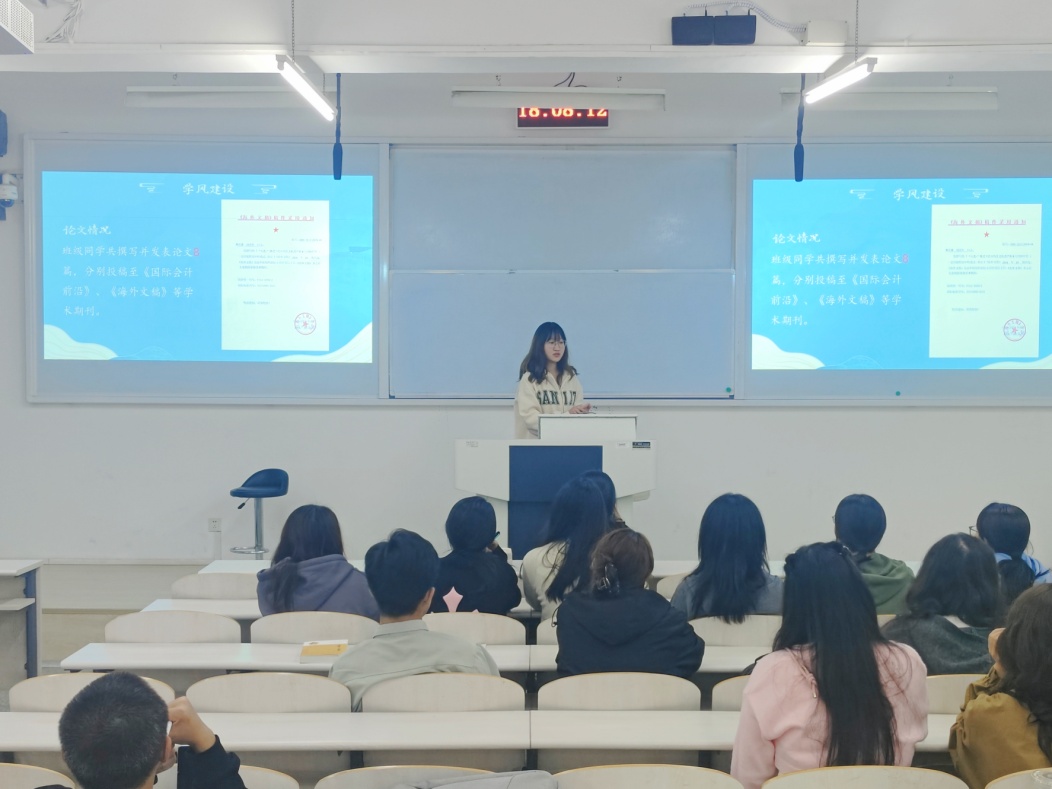 经管学院召开24级新生班委培训会,会22-4 班班长裴雨萱以思想建设、服务贡献、班级氛围、学风建设等方面分享班级建设经验,帮助新生班委更好地熟悉各项工作。