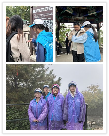 香山公园团委张莉瑜老师为志愿者们进行了系统培训,提醒同学们在服务中要保持礼貌,彰显新时代大学生阳光向上的青年形象。随后,志愿者们身着蓝色马甲,在香山公园和碧云寺检票验票、浏览路线等不同点位开展服务活动。志愿者们手持指示牌引导游客文明爬山,解答游客问题、引导路线,获得了一致好评和认可。