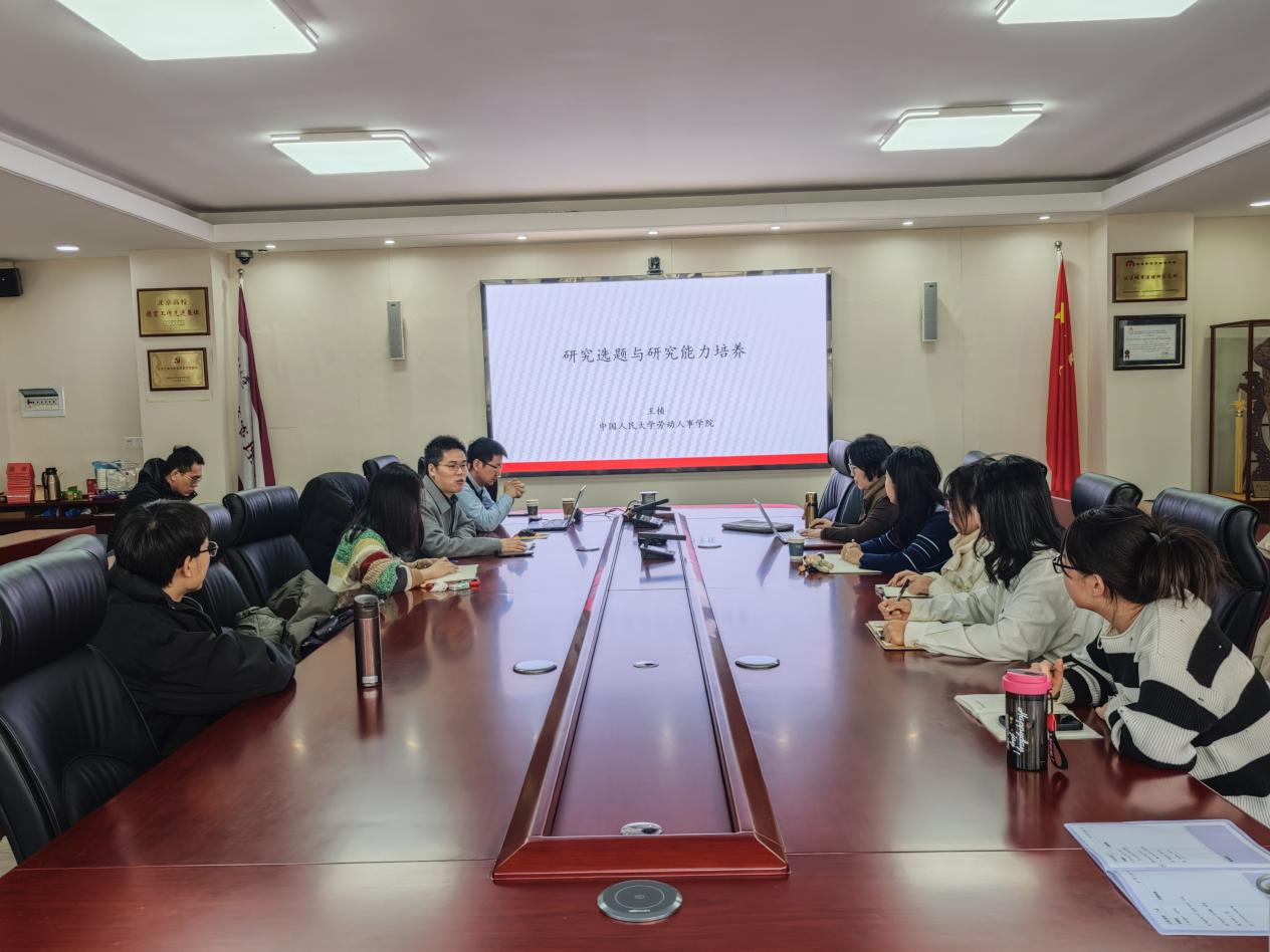 12月17日下午,中国人民大学劳动人事学院王桢教授应邀走进太阳集团tyc151cc,在励学楼 201 开启第三十五期励学讲堂的学术盛宴。王桢教授以“研究选题与研究能力培养”为主题,为学院研究生作专题讲学,讲座由罗文豪教授主持。